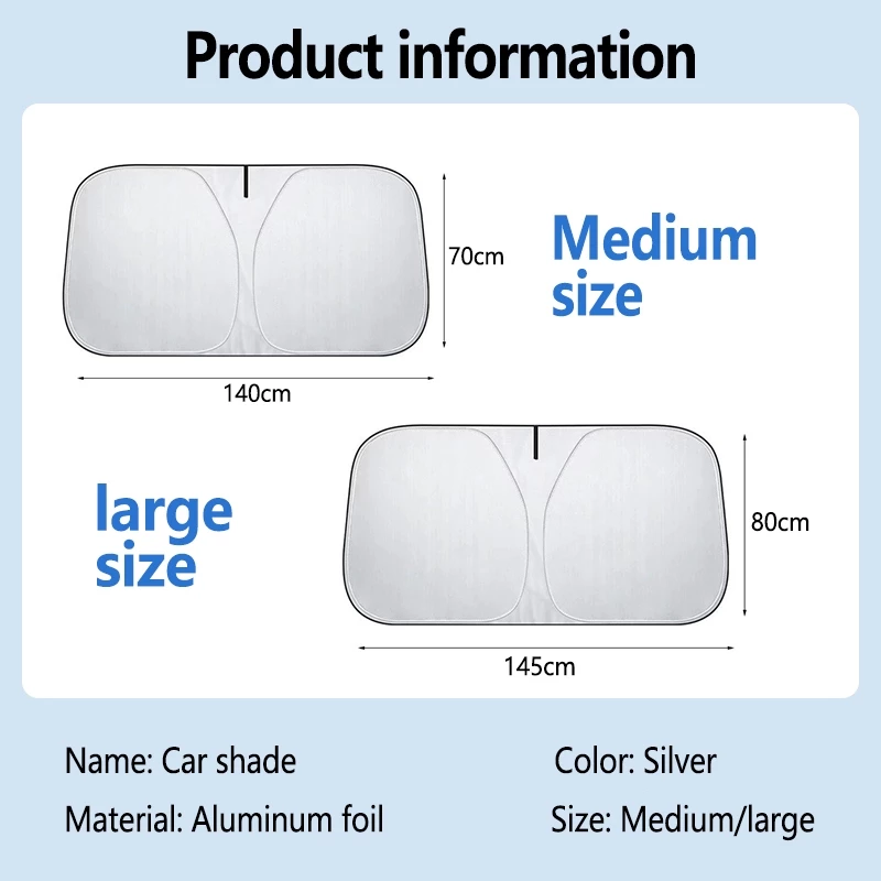 Enjoy a cooler, more comfortable drive with our Car Windshield Sun Shade Umbrella, designed to provide strong heat insulation and effective UV protection. The titanium silver glue material reflects sunlight, keeping your dashboard and interior safe from fading and cracking. No more uncomfortable heat buildup inside your car—just pure comfort every time you get behind the wheel!