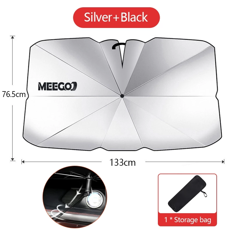 – Easy to fold and store, this umbrella-style sun shade fits perfectly in your car without taking up valuable space.